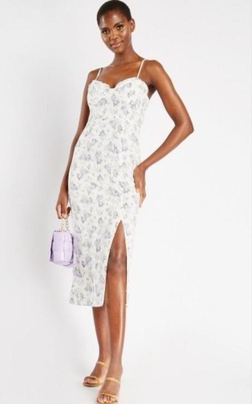 Новое прекрасное платье миди из смеси льна и вискозы в нежный цветочный принт от Primark. Прямой силуэт с завышенной талией и тонкими регулируемыми бретелями. Разрез сбоку. Застежка на молнию сбоку. Размер 14/42 Состав : 83% вискоза 17% льон Длина - 122+- ПОГ - 50 ПОТ - 42 ПОС - 54 Разрез - 40