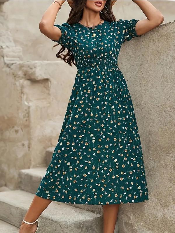 Зелена сукня міді в квітковий принт Тканина софт Пояс і рукава на резинці Розмір м Довжина 119 Груди до 92 Талія