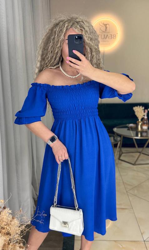 Новинка❤️ Мод 339 Тканина: американский креп жатка Розміри: 42-44,46-48,50-52 Сезон: весна/літо Ціна:650 грн Сукня, яка закохує з першого погляду! Літня сукня міді з відкритими плечима — ідеальний варіант для теплих днів. Модель з еластичним верхом на резинці, який гарно підкреслює лінію плечей та зону декольте. Рукави-фонарики з легкою резиночкою додають образу романтики та жіночності. Талія акцентована широкою еластичною вставкою, що забезпечує комфортну посадку та підкреслює силует. Спідниця — вільного крою, м’яко спадає вниз, не сковуючи рухів. Розмір 42–44: Груди: 80–86 см Талія: 60–68 см Довжина сукні: 109 см Довжина рукава: 33 см Розмір 46–48: Груди: 88–94 см Талія: 68–76 см Довжина сукні: 110 см Довжина рукава: 33 см Розмір 50–52: Груди: 102–108 см Талія: 76–84 см Довжина сукні: 111 см Довжина рукава: 34 см