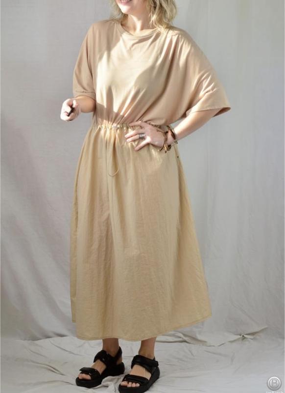 Сукня в ідеальному стані. Браку та дефектів немає. На поясі резика, регулюється. Тканина тонка, не просвічує. Спідниця – плащівка. Плечі 74см Висота пройми 26см Ширина біцепсу 21см ПОГ 73см ПОТ 65см ПОС 77см Довжина 132см Довжина від плеча до лінії талії 46см На світлині параметри моделі: рост 171см, стегна 105см, талія 71см, бюст 95см.