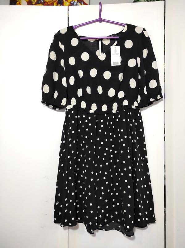 Новое с биркой платье в горох ⬆️ обмен и возврат не предусмотрен ⬆️ 💥 состав вискоза, размер указаннее 14, лучше сядет на меньшие размеры, ориентируйтесь на замеры Пог 49 Ширина по плечам 39 Дл рукава 32 Высота от плеча до линии отреза 35 Пит 35-46 Поб 50+- Дл изделия 90