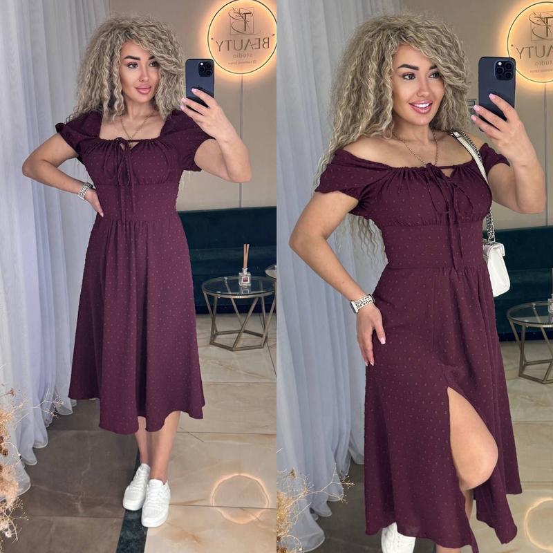 💥Новинка 💥 Сукня Мод: 949А / Вел. ▪️Размеры :42-44,46-48,50-52. ▪️Цвета: масло, бургунди, бежевый, зелений. ▪️Тканина: жатка горошок. длина Миди! Отлично сочетается с любой обувью☺️ Хорошее качество Фото и видео реал. По желанию, могу добавить видео обзор платья в личные сообщения.