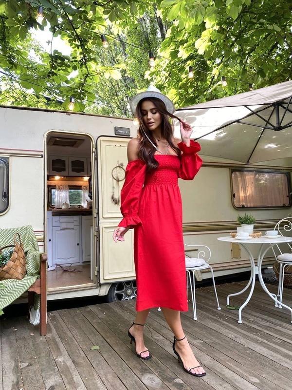Найпопулярніша сукня ✅ Реал фото Мод 1581 Тканина льон Колір червоний, чорний, білий, беж,зелений,джинс Розмір універсальний 42-46 Довжина виробу 110 см об'єм грудей до 110 см резинка Рукав 58 см