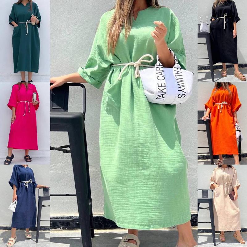 Сукня oversize з канатом (йде у комплекті) Кольори: зелене яблуко, беж, малина, чорний, темно-зелений, помаранчевий, темно-синій Довга лляна сукня в стилі оверсайз — ідеальний вибір для тих, хто цінує комфорт, природність і стиль. Модель виконана з натуральної тканини, що дозволяє шкірі дихати і забезпечує легкість у спекотну погоду. Вільний крій під шнурок м’яко огортає фігуру, не обтягує, а навпаки — візуально витягує силует і робить його стрункішим. Сукня чудово підходить для жінок з фігурою плюс-сайз: вона вдало підкреслює переваги та приховує недоліки. Стриманий дизайн легко комбінується з аксесуарами, взуттям та сумками — як для повсякденного, так і для святкового образу. Мод: 7145 Розміри: 44-50, 52-58 Тканина: Льон Бохо (натуральна тканина) Заміри: Довжина 124см Перший розмір ОГ до 140см Другий розмір ОГ до 158см
