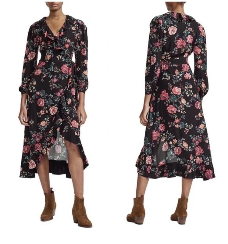 Сукня міді maje, з запахом, чорна з квітами. платье миди, с запахом