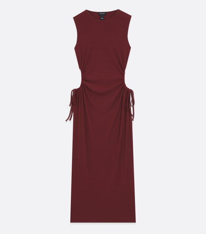 Сукня міні бургунді кольору в рубчик з вирізами на талії та розрізом на ніжці