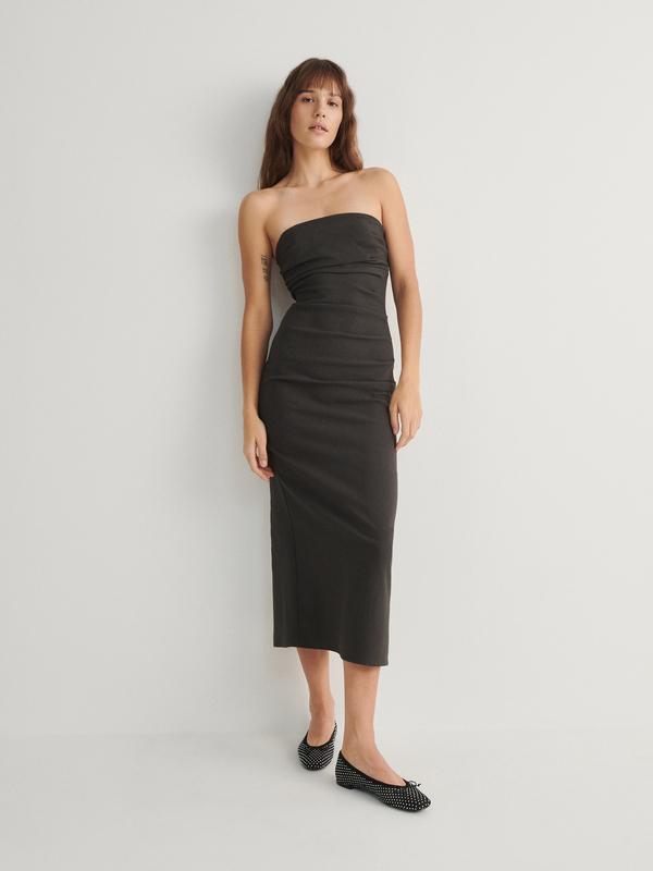сукня приталеного крою, виконана з гладкої бавовняної тканини, ззаду має розріз, довжина міді розмір с стан ідеальний, без дефектів