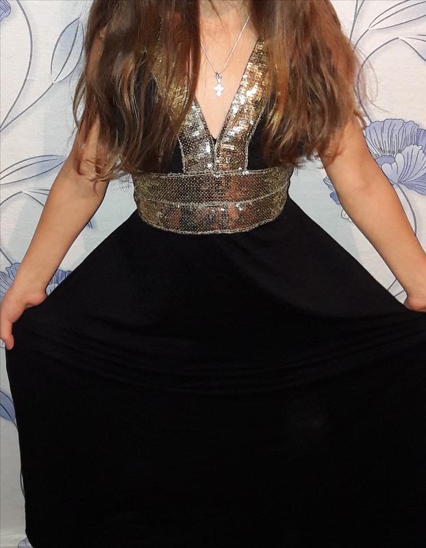 Платье идеально подходит на корпоратив. С золотыми паетками. На фото моя дочка, так как на меня платье мало
