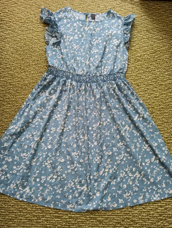 платье миди в цветочный принт на размер m-l, хоть по бирке xl, маломерит, на рукавах имеет рюшки,талия на широкой резинке, красиво садится по фигуре, сзади застегивается на пуговицу отличное качество, состояние идеальное