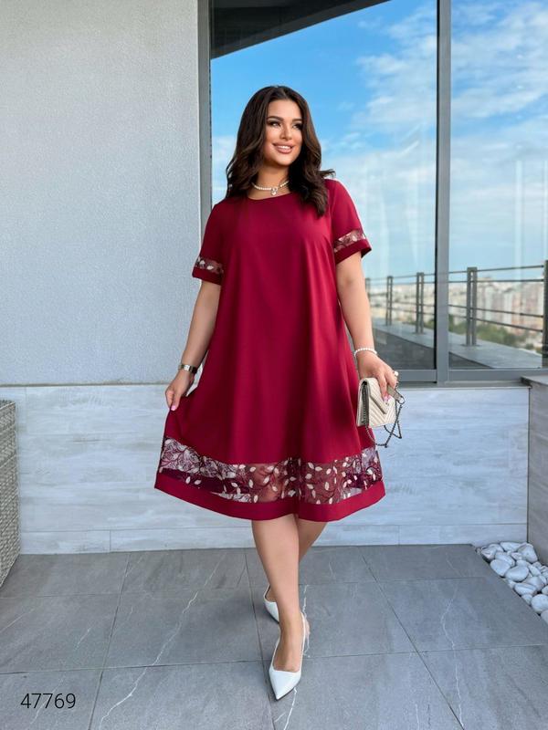 ❗️❗️❗️Перед оформлением заказ уточняйте, пожалуйста, наличие вашего размера. Срок отправки от 2 до 7 дней Новой или Укр-почтой. Вдалих покупок❤️ Платье с полупрозрачными вставками. Сзади застегивается на пуговицу. Ткань: евро костюмная, производство: Турции (трохие тянется). Цвета: черный, синий, бежевый, бирюзовый, бордовый, розовый Замеры: 50-52: д. виробу - 110 см, рукав - 23 см, ОГ - 112 см. 54-56: д. виробу - 110 см, рукав - 24 см, ОГ - 120 см. 58-60: д. виробу - 112 см, рукав - 25 см, ОГ - 130 см. 62-64: д. виробу - 113 см, рукав - 26 см, ОГ - 138 см.