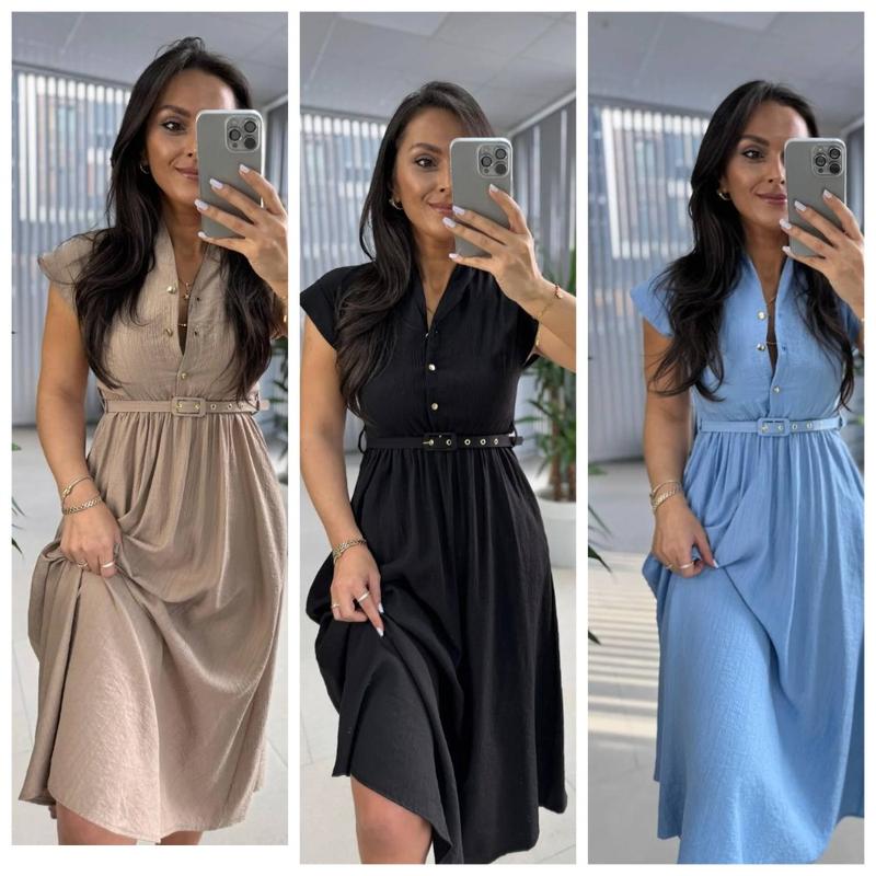 Не замінна річ на весну літо! Тканина:жатка Туреччина 🇹🇷 Наша стильна сукня підійде під всі твої образи!😍 Кольори:чорний, блакитний,бежевий,фрез Розміри: 42-44,46-48,50-52 Якість гарна! 🔥Ціна: 675 грн 🔥 Поясок за бажанням продається окремо + 70 грн