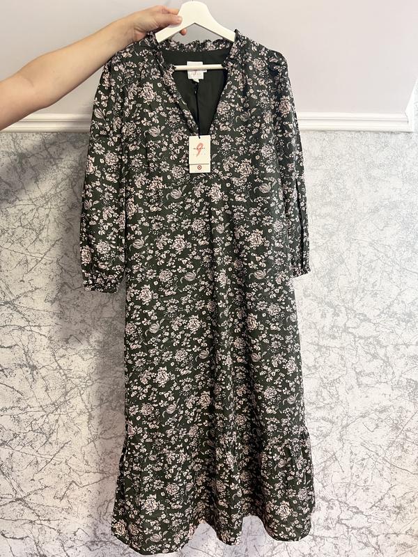Сукня у квіточки з підкладкою дуже приємна проста тканина, на бірці пише розмір с але іде трішки більша, і вільніша Заміри Пів обхват грудей 44см Пів обхват бедер62см Довжина сукні 119см Довжина рукава 54см рукав на резинці