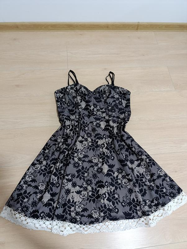 святкова фірмова сукня з мереживом. Виглядає дорого та ефектно бренд lipsy 100% poliester розмір вказано EUR 16 ◽ Зверніть будь ласка увагу на заміри довжина сукні 80 см НОГ 50 см ( тягнеться до 59 см ) брителька 23 см максимальна довжина , можно зробити меньше мереживо знизу пришито, за бажанням можно зняти. є зовсім невелика затянутість збоку в ціну вразовано ( останнє фото)