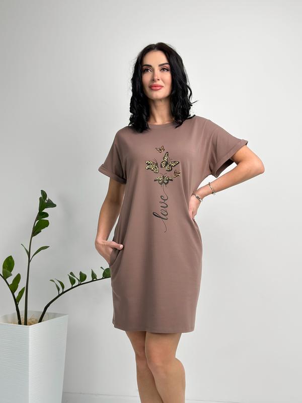 Кольори: чорний, джинс, зелений, мокко, бежевий, сірий, графіт 🧷Розміри: 42-44, 46-48, 50-52 🪡Матеріал: турецький кулір (95% бавовна, 5% спандекс) 📏Виміри: Довжина по спинці: 91-93 см Довжина рукава від горловини: 30-31 см ⠀