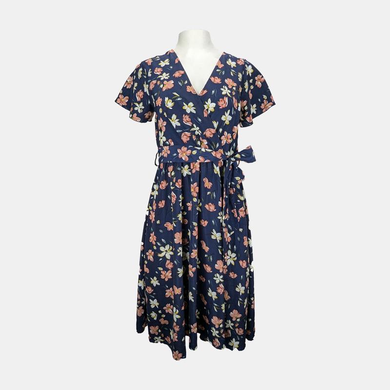 Летнее платье от Shein. Темно- синего цвета. С цветочным принтом. В идеальном состоянии. Талия на резинке с поясом. Грудь- на запах. Свободный рукав, свободного кроя низ. Размер L-XL. Ориентируйтесь по замерам Н/ о груди- 48см Н/о талия 37см до 50 см в растянутом состоянии Н/о бедра - 70см Длина платья - 105см Возможна погрешность -+1см