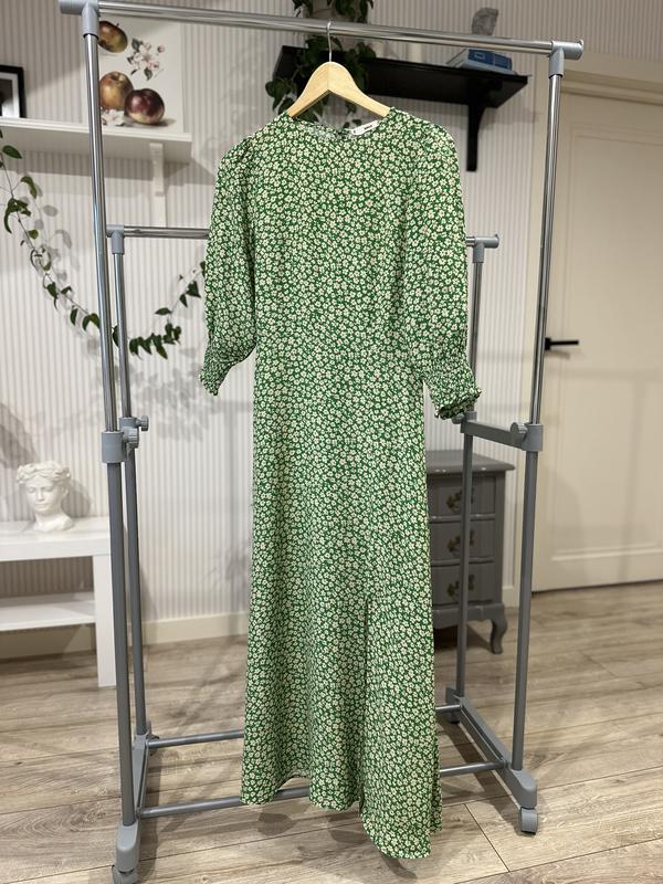 Дуже гарна зелена сукня з квітковим принтом, гарний розріз на ніжці, розмір XS, в дуже гарному стані, тканина віскоза