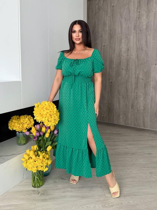 🥰Волшебное платье из новой коллекции 🥰 5414 Размеры: 1(48-50),2(52-54),3(56-58) Тканина: софт 3D горох Замеры: (48-50)-ОГ 120 см,Талия - на резинке, растяжимость до 104 см (52-54)-ОГ 124см, Талия - на резинке, растяжимость до 112 см (56-58)-ОГ 128 см,Талия - на резинке, растяжимость до 128см Платье с объемной юбкой Длина рукава от горловины 30 см Длина по спинке 124 см