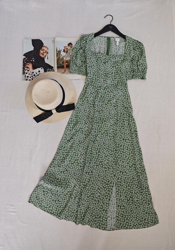 🌿зеленый платье в принт H&M сзади на замке, ткань вискоза Размер:34 Замеры:ПОГ 38 см, ПОТ 32 см, длина 125 см