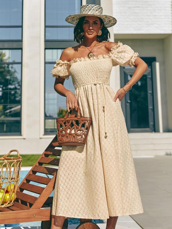 Летнее расклешенное платье из прошвы бежевая | 89890