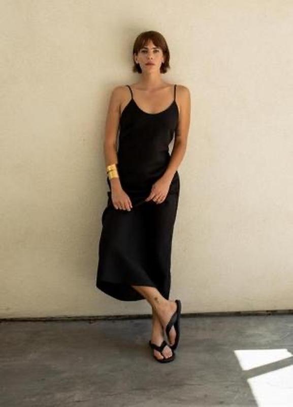 Платье средние длины из штапелильные льняной ткани с добавлением вискозы. Круглый вырез и тонкие бретели. Слегка расклешенный низ Платье шикарное, садится идеально. ПОГ- 44,ПОТ-41,ПОБ-54, длина 130см. Состав: 55% лен, 45% вискоза.