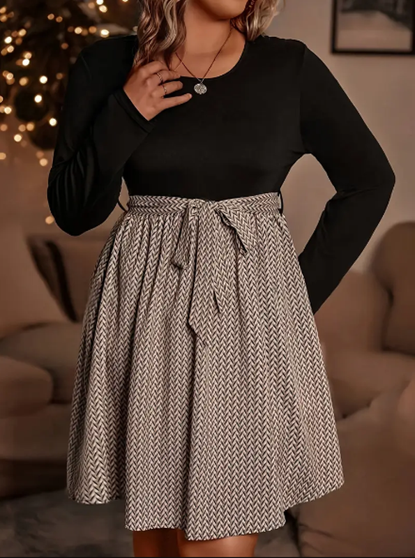 Shein curve комбинированное платье с пышной юбкой размер plus