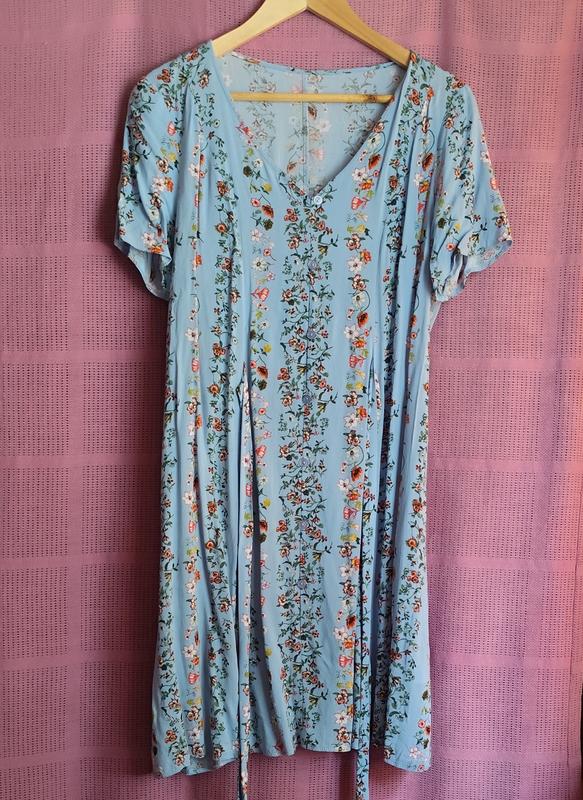 Летнее платье, ткань вискоза легкая и мягкая, не тянется, нежно голубого цвета, состояние идеальный, нансов не имеет,пог-50 см,пот-48 см, поб-50 см, длина -92 см