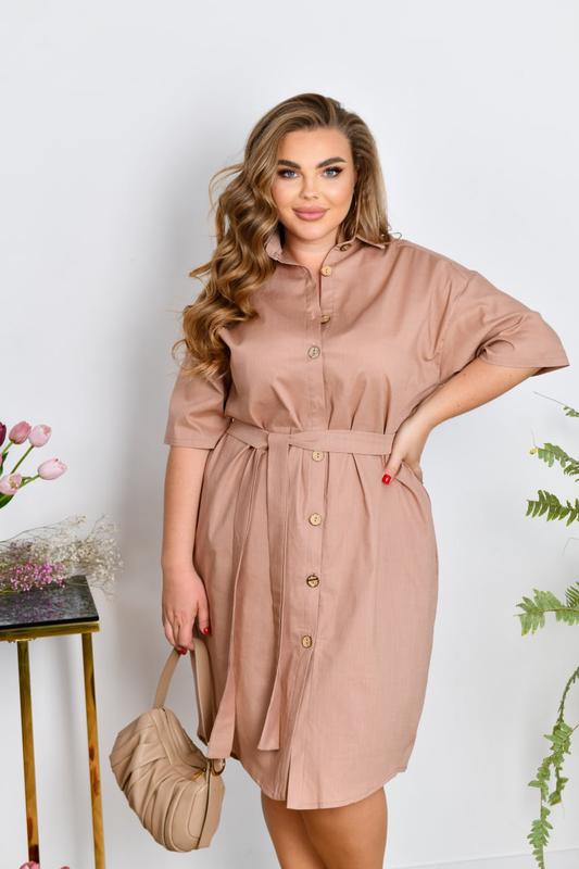 Сукня 3656 Ткань: стретч-лён 100% натуральный. Цвет: хаки, пудра, лиловый, черный, горчица, ярко-синий, зеленый, джинс, голубой, ментоловый, шоколад, капучино, молочный. Размеры: 48-50, 52-54, 56-58, 60-62, 64-66. Длина платья: 107, 110, 113, 116, 119 см. Длина рукава: 23, 24, 25, 26, 27 см. Обхват рукава: 44, 46, 48, 50, 52 см. Замеры готового изделия: ✅48-50 ОГ 112 ОТ 116 ОС 128 ✅52-54 ОГ 120 ОТ 124 ОС 136 ✅56-58 ОГ 128 ОТ 132 ОС 144 ✅60-62 ОГ 136 ОТ 140 ОС 152 ✅64-66 ОГ 144 ОТ 148 ОС 160 На модели показан этот размер 52-54❗️ Рост модели 170 см. Oбьемы модели ОГ 108 ОТ 85 ОБ 115 см. Платье-рубашка из стретч-лен (100% натуральный). Застежка на пуговицах по передней планке. Воротник стояче-отложной. В боковых швах обработаны карманы. В комплекте пояс из основной ткани (можно носить без пояса). #Одеждукраина #женовременность Внимание! По данному товару есть отправка: - Укрпошта - повна оплата на карту - Новая почта - полная оплата или наложка с подпиской 150 грн Безопасной оплатой этот товар не поставляем! В случае наложки - меряете на поште, если не подходит - отказываетесь. Предписание при отказе не возвращается. Если достал товар из почты домой нет.