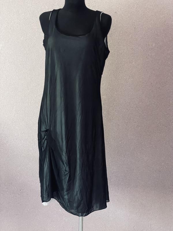 В ідеальному стані. В цій сукні підкладка біла бавовна, к тілу натуральна Зверху чорна сітка і збоку красива драпірування Пог 54/56 Пот 51/56 Пос 58/65 Довжина 112 Розмір вказаний ХЛ