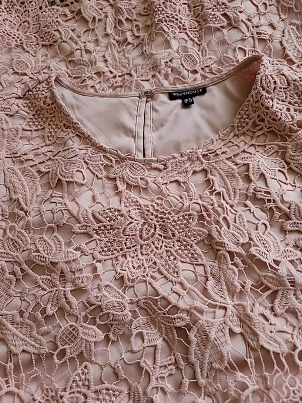 очень красивое кружевное платье в идеальном состоянии. Цвет розовый пудровый (фото 1). На подкладке. Длина по спинке 92, полуобъем груди 50, бедер 55, пройма 25. Размер M-L
