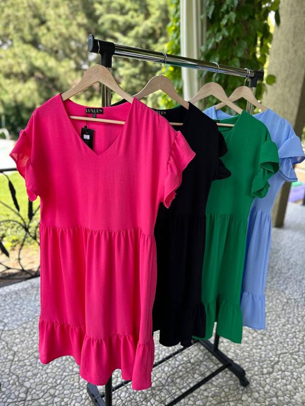 Сукня НОВИНКА💖💖💖 В НАЯВНОСТІ✅✅✅ Код* 3731 Ткань: американский креп. Цвет: малина, зеленый, голубой, черный. Размеры: 48-50, 52-54, 56-58, 60-62, 64-66. Длина платья: 103, 104, 105, 106, 107 см. Длина рукава: 25, 26, 27, 28, 29 см. Обхват рукава: 42, 45, 48, 51, 54 см. Замеры готового изделия: 48-50 ОГ 108 ОТ 102 ОБ 150 52-54 ОГ 116 ОТ 110 ОБ 170 56-58 ОГ 124 ОТ 118 ОБ 190 60-62 ОГ 132 ОТ 126 ОБ 210 64-66 ОГ 140 ОТ 134 ОБ 230 На модели показан этот размер 48-50❗️ Рост модели 170 см. Oбьемы модели ОГ 107 ОТ 84 ОБ 107 см. Невероятно стильное женственное платье из воздушного жатого крепа ( растяжимость минимальная, не жарит в жаркую погоду). Платье состоит из лифа и юбки в два яруса. Вырез горловины V-образный, что визуально делает шею стройнее. Линия плеча спущена, рукав короткий, декорирован очень красивым воланом. Карман и застежек нет. Платье идеально скроет любые недостатки фигуры, и сделает ее более привлекательной.