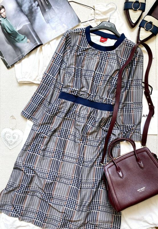 Лёгкое трикотажное платье 109 F в принт "гусиная лапка ". Платье без подкладки, пояс на резинке, рукава 7/8. Ткань средней плотности, мягкая, тактильно приятная, тянется. Размер указан L Замеры: плечи 37-38 см, длина рукава 48 см, бицепс 18,5 см (половина), ПОГ 51 см (тянется до 58 см), ПОТ 39 см (тянется до 55 см), ПОБ 60+, длина до резинки 35 см, до талии 37,5 см, общая длина 108 см