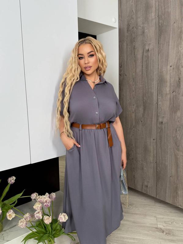 Это платье - настоящее воплощение легкости и женственности. Мягкий штапель, комфортная посадка и нежные цвета сделают твое лето особенным. Сукня Модель: 1963 Тканина: штапель Размеры: 50-52, 54-56, 58-60 Длина платья: 122 см Длина рукава: 33 см Пояс в комплекте Цвет: белый, оливка, желтый, серый, мокко, голубой. ✅ЗАМІРИ✅ 50-52 ОГ — 110 см ОТ (резинка) — 76–104 см ОС — 134 см 54-56 ОГ — 118 см ОТ - 86–114 см ОС — 142 см 58-60 ОГ — 124 см ОТ - 94–120 см ОС — 152 см Есть видео обзор