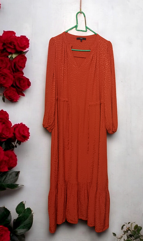 Шикарна міді сукня з V-вирізом із якісної віскози макового кольору від Next. Сукня із завишеною лінією талії, не тягнеться, лише можна затягнути куліску. Стан ідеальний. Розмір 14, може підійти і на більші розміри, краще орієнтуватися на виміри: Плечі - 40 Пог - 56 Пот - 57 Пос - 66 Довжина - 122 Пройма - 24 Рукав - 54 🚚 Вiдправляю Укрпоштою, Новою Поштою та meest пiсля передоплати. ❗ Безпечної оплати, наложки, обміну чи повернення НЕ передбачено! 🔎 Дивіться інші мої оголошення. При покупці від 3-х речей роблю знижку або обирайте подарунок (вказуйте про це перед оформленням накладної). Вдалих Вам придбань 🛒 🙂