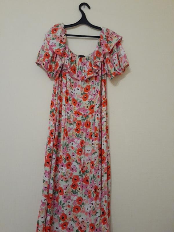 Пог 70 см пот 54 см поб 84 см длина 126, длина рукава 30 см. Очень красивый цветочный принт.
