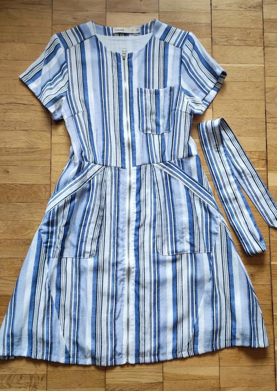 Продам полосатое летнее платье в идеальном состоянии. Размер указан 10, подойдет также на 8 (S). Стан как новый, без недостатков. Ткань приятная к телу, не парит - отличный вариант для лета. Платье имеет подклад, не светится, красиво держит форму. Застегивается спереди на молнию по всей длине платья, имеет поясок и карманы. Очень качественная и стильная вещь. Пишите в личные - дам замеры, дополнительные фото и дроть. В Киеве возможен самовывиз.