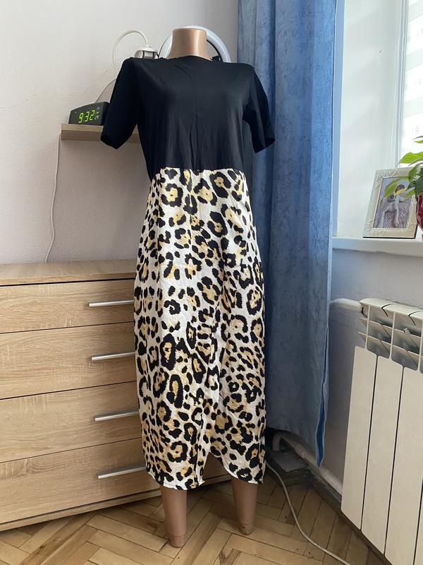 Сукня міді в лео принт Легка, зручна Верх трикотаж, низ легка спадаюча тканина типу шовку, на запах