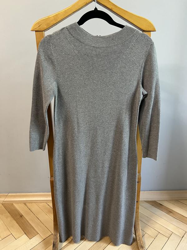 Сукня сірого кольору з рукавом три чверті, розмір вказаний XS, та краще S/M, дуже добре тягнеться, не перетискає, зручно одягати на кожен день. Американський бренд Talbots, дефектів немає, ззаду на сукні є замочок. Носила декілька разів.