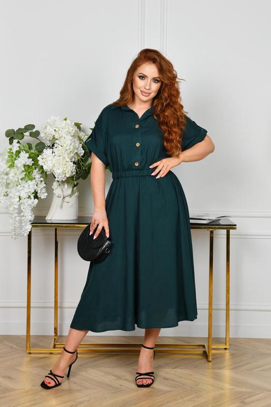 Сукня Артикул : 3656 | Размеры: 1(48-50); 2(52-54); 3(56-58) | Длина по спинке: 117 см ⁃ Рукав: короткий | Материал: штапель коттон | Цвета: изумрудный, Замеры изделия: ⁃ 1 р/р: О.Грудей 108 ⁃ 2 р/р: О.Грудей 116 ⁃ 3 р/р: О.Грудей 124 Эллис