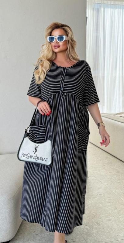 Платье без бирки, состояние новой, ткань софт, растяжимости нет, должно садиться свободно. Длина по спинке 127см, ПОГ 63см, ПОТ 67см (талия завышена), ПОБ 102см, плечо 11см, рукав 30см.
