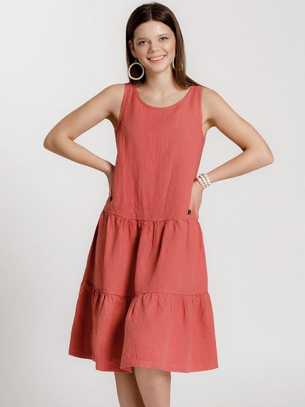 Размер по набору 16 Полуобъем груди-55 Полуобъем талии-65 Длина-102 Состав:55% лен, 45% вискоза. Цвет приглянусь кирпичный