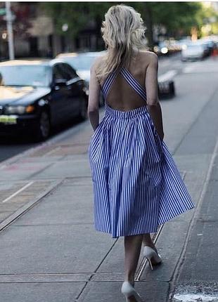 Хорошес летнее платье-сарафан в полоску длины миди Выполнена из хб волокна на подкладке из хб волокна тоже Модна носить как на фото на бритье, а можно миксовать с топом Талия фиксированная. Не на резинке. В наличии в размерах S m l Застежка молния Брители можно отрегулировать по высоте с помощью пуговиц