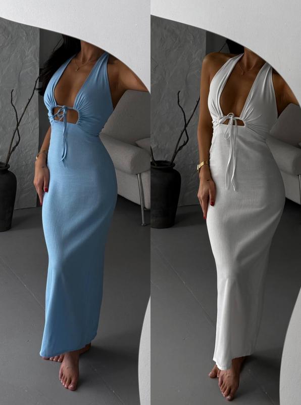 Лляна сукня з відкритою спиною, сарафан льон завязка ни шиї, льняное платье летнее