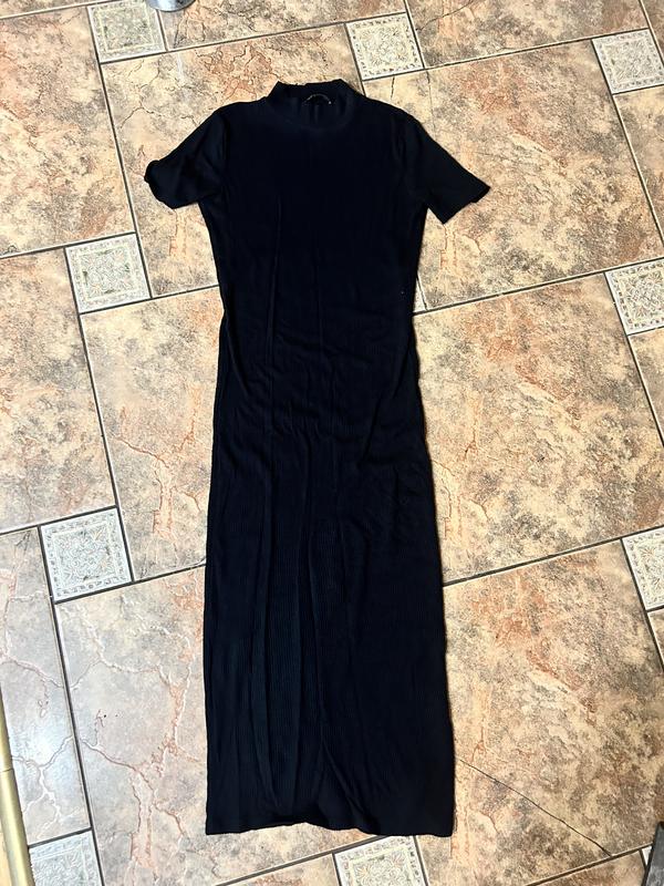 чорне плаття рубчик довге в обтяжку. Довжина 110, в поясі 30, плечі 32, тягнеться