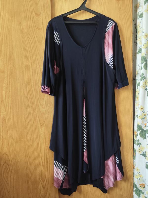 Сукня з імітацією сарафану ОГ по виробу - 125 см ОС по виробу - 140 см Довжина - 120 см Довжина рукава - 42 см Сезон: весна, літо Матеріал: трикотаж Дефектів немає