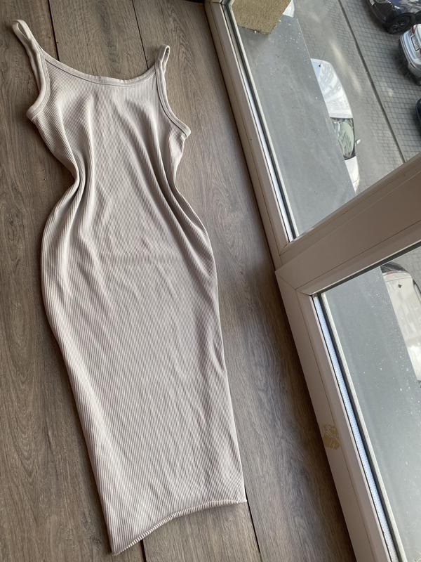 Светло серое строчивое платье миди. Размер m