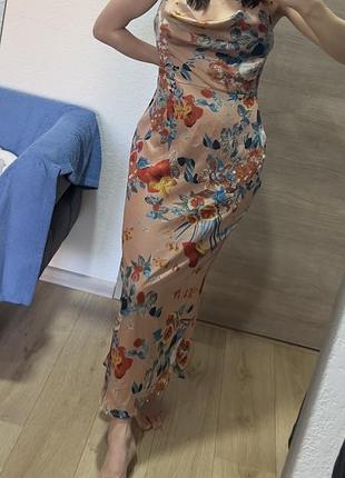 Шикарна жіноча сукня-комбінація у квітковий принт, на спині на завʼязках