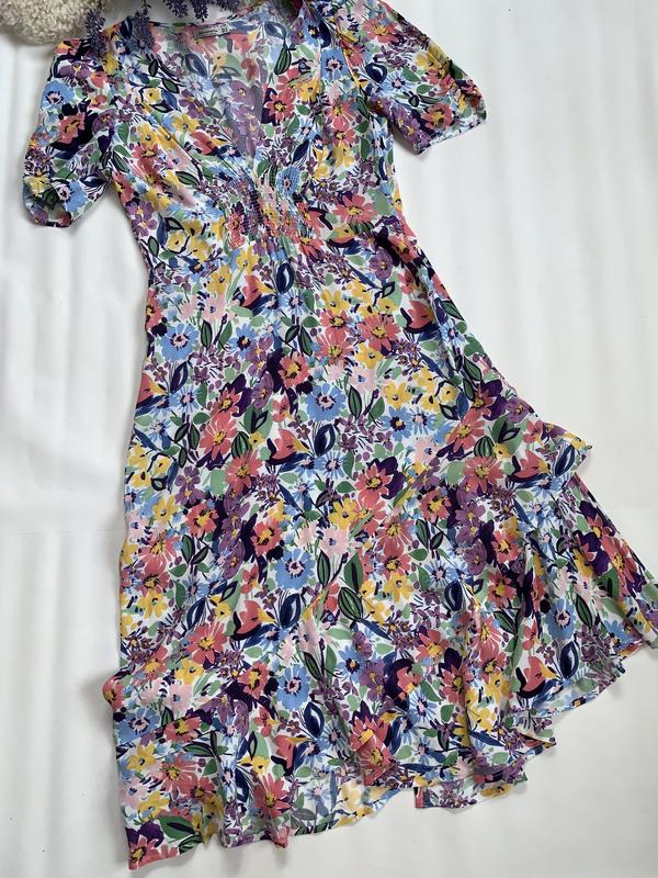 Стан відмінний Бірка зі складом зрізана, але очевидно це віскоза Розмір М Плечі 36 см Ширина під пахвами 47-49 см По лінії талії до 38 см В стегнах до 52 см Довжина по спинці 110-112 см по центру, з одного боку трохи довше