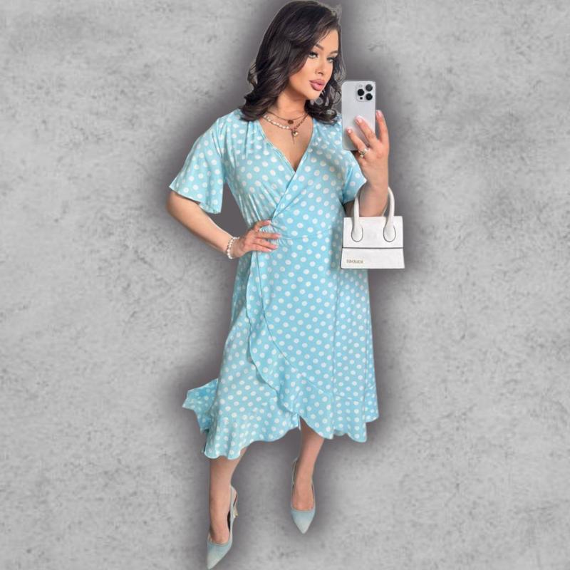 Платье миди летнее женское асимметричное на запах с рюшами большого размера батал платья г...