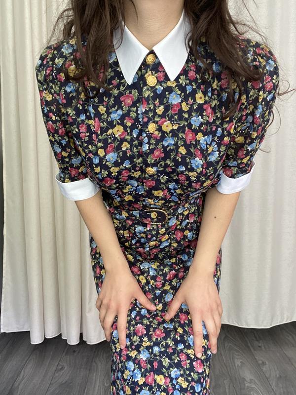 Красивое винтажное платье с пояском с белым воротничком и полупрозрачной тканью