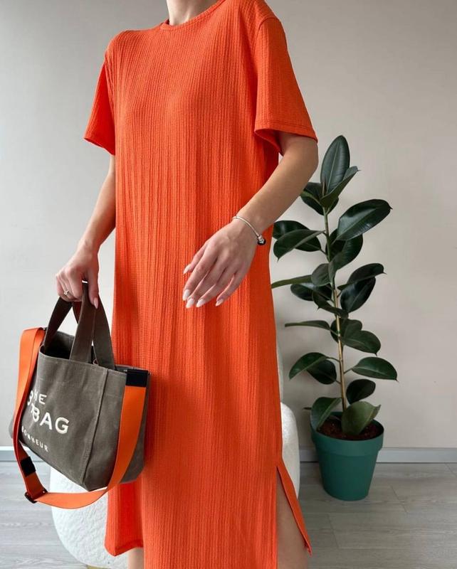 🔥 Сукня-футболка Кольори: - чорний, трава, помаранчевий, шоколад ➡️Мод. 1347 ➡️Розмір: 42-44; 46-50 ➡️Тканина: американський креп (жатка) Заміри: Розміри: 42/44 | 46/50 Довжина 110см | 111см ОГ 95см | 110см ‼️Найкращі ціни, новинки, наявність (Разг 6220)‼️